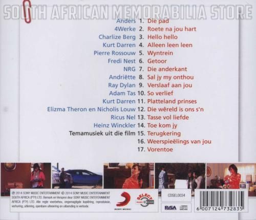 | Track Listing: | 1 Anders – Die Pad 2 4 Werke – Roete Na Jou Hart 3 Charlize Berg – Hello Hello 4 Kurt Darren – Alleen Leen Leen 5 Pierre Rossouw – Wyn Trein 6 Fredi Nest – Getoor 7 NRG – Die Anderkant 8 Andriette – Sal Jy My Onthou 9 Ray Dylan – Verslaaf Aan Jou 10 Adam Tas – So Verlief 11 Kurt Darren – Platteland Prinses 12 Elizma Theron & Nicholis Louw – Die Wereld Is Ons S’n 13 Ricus Nel – Tasse Vol Liefde 14 Heinz Winckler – Toe Kom Jy 15 Terugkering (Temamusiek uit die film) 16 Weerspleelings Van Jou (Temamusiek uit die film) 17 Vorentoe (Temamusiek uit die film) |
